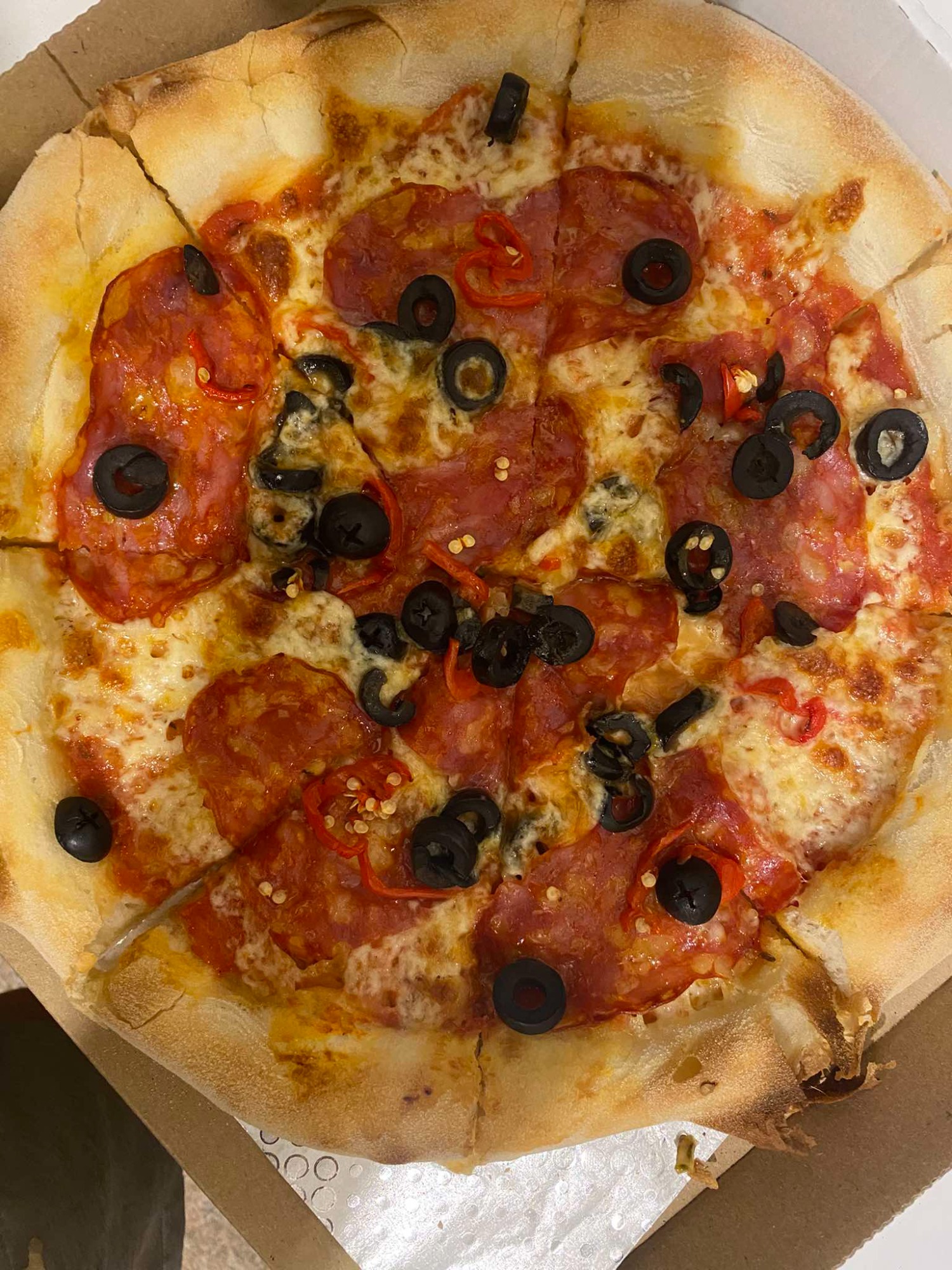 Sos pomidorowy (bazowy), Pieczarki, Oliwki , Pomidor, Cebula, Papryka, ser mozzarella galbani