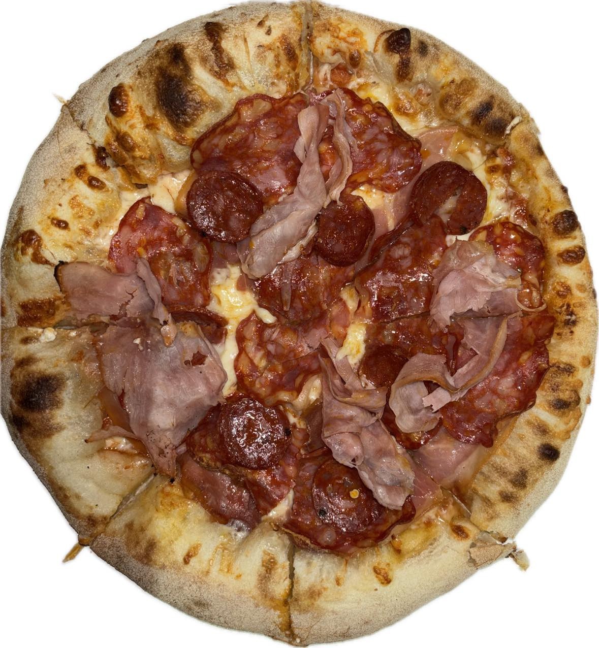 Mięso mielone, kiełbasa chorizo, Pieczarki, Cebula, Sos barbecue (bazowy), Mozzarella Galbani