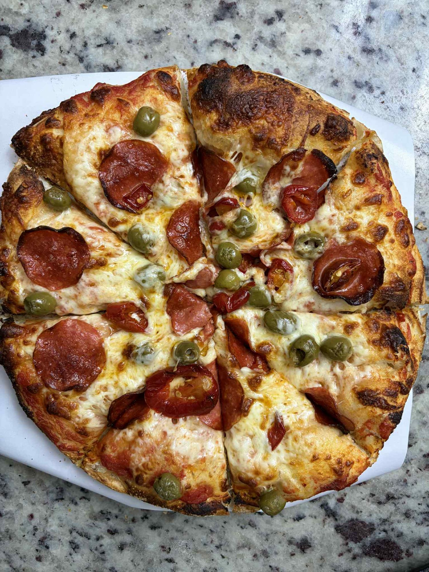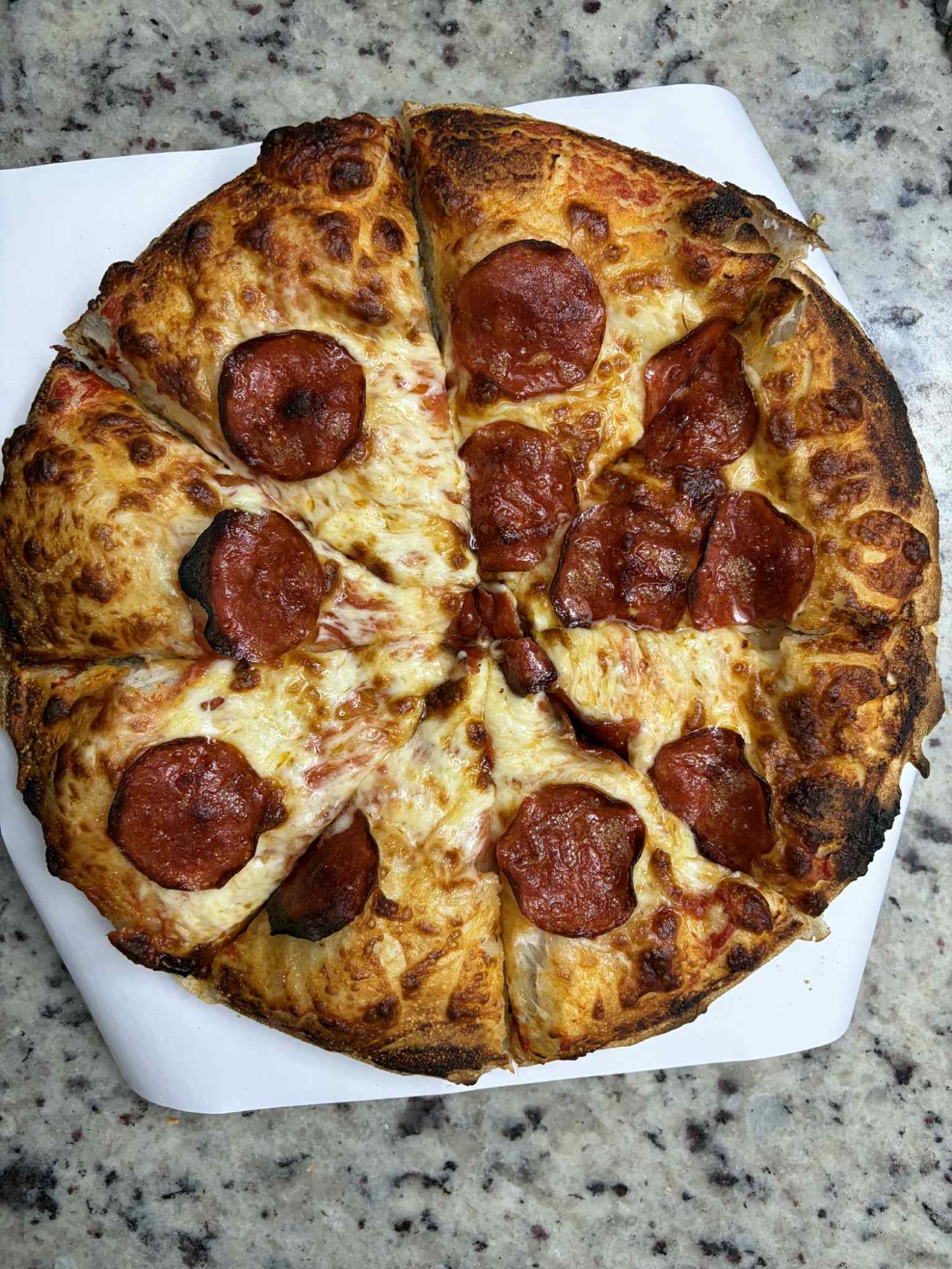 American Pizza 30cm Ciasto grube, puszyste i miękkie w środku, z chrupiącymi brzegami.
